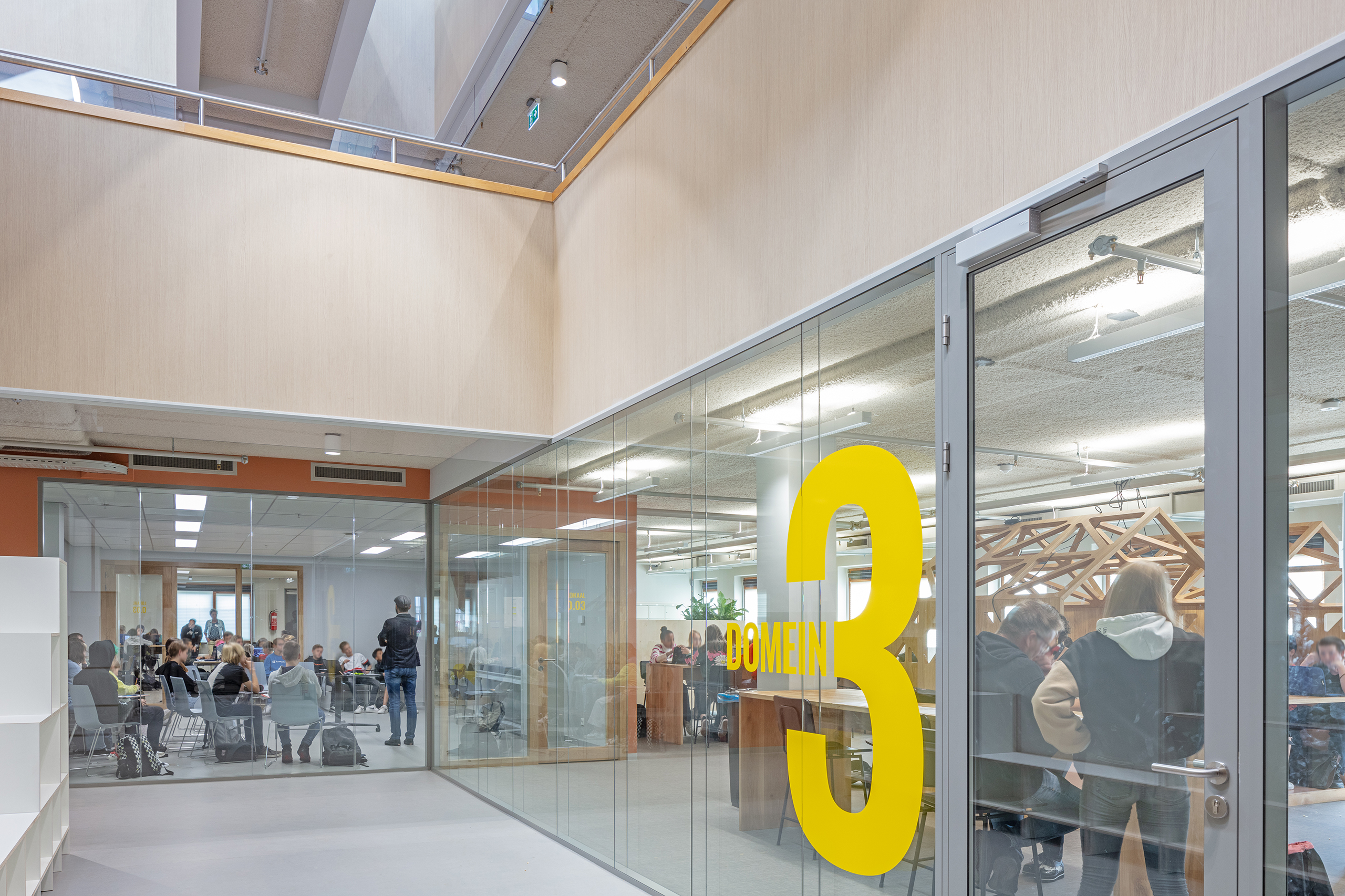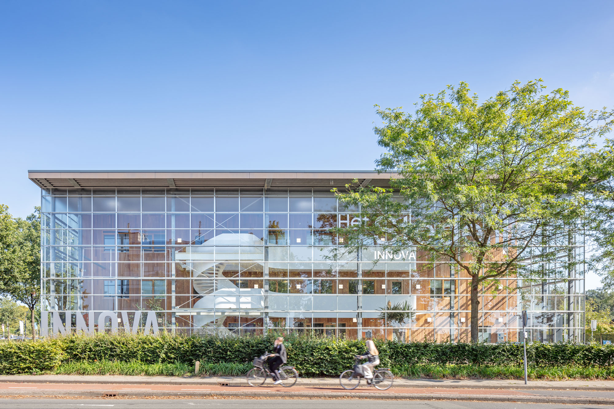 In het gebouw realiseerden we meerdere functionele leerdomeinen waar verschillende werkvormen mogelijk zijn. Leerlingen kunnen hier zelfstandig werken, samenwerken en presenteren, geheel in lijn met het onderwijsconcept van Innova. Daarnaast komen er transparante lesruimten in het gebouw waar vakdocenten instructielessen gaan geven. Ook krijgt de school een kantine, praktijklokalen, een (school)bibliotheek, collegezalen, een moderne gymzaal en diverse buitensport mogelijkheden.