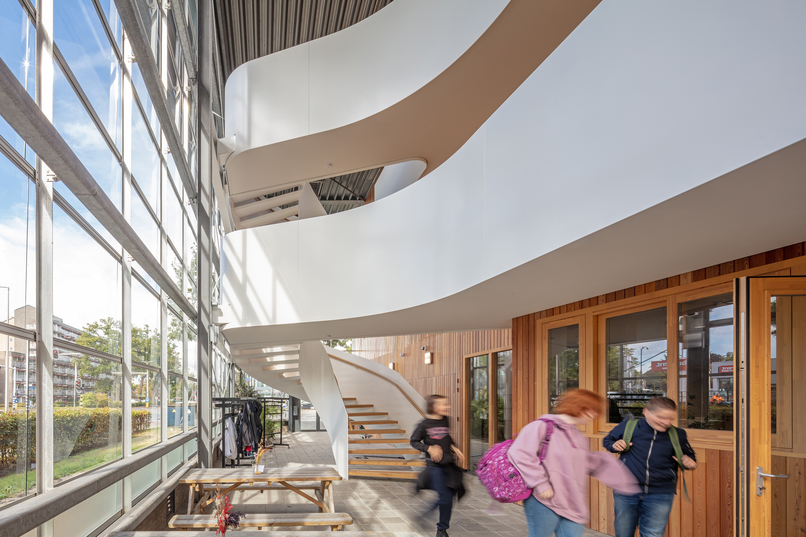 De visie van deze school vraagt om een passend en ook bijzonder ontwerp. We werkten samen met Atelier Pro architecten (interieur-ontwerp), ConStabiel (advies constructies) en INNAX (advies installaties).