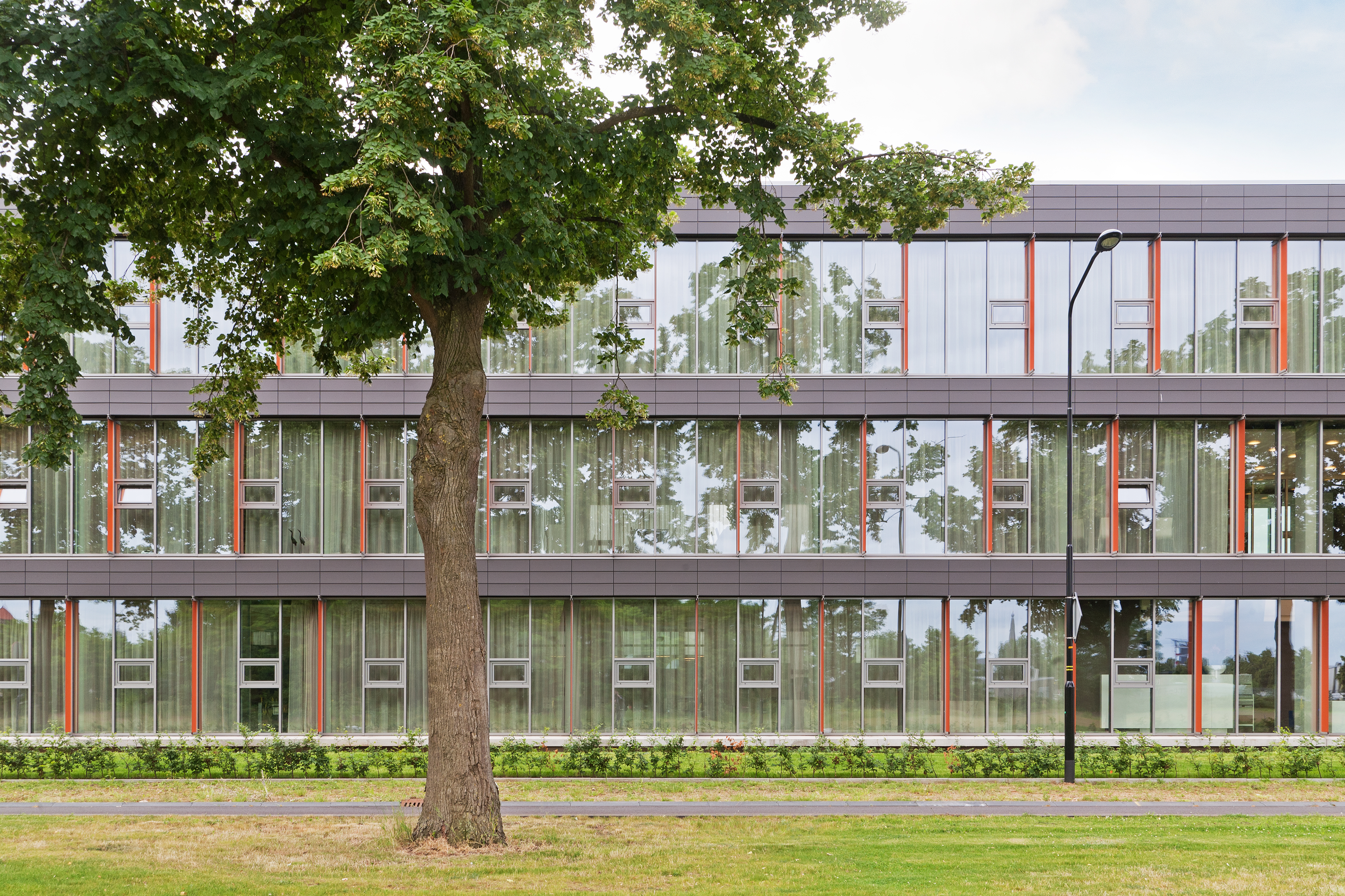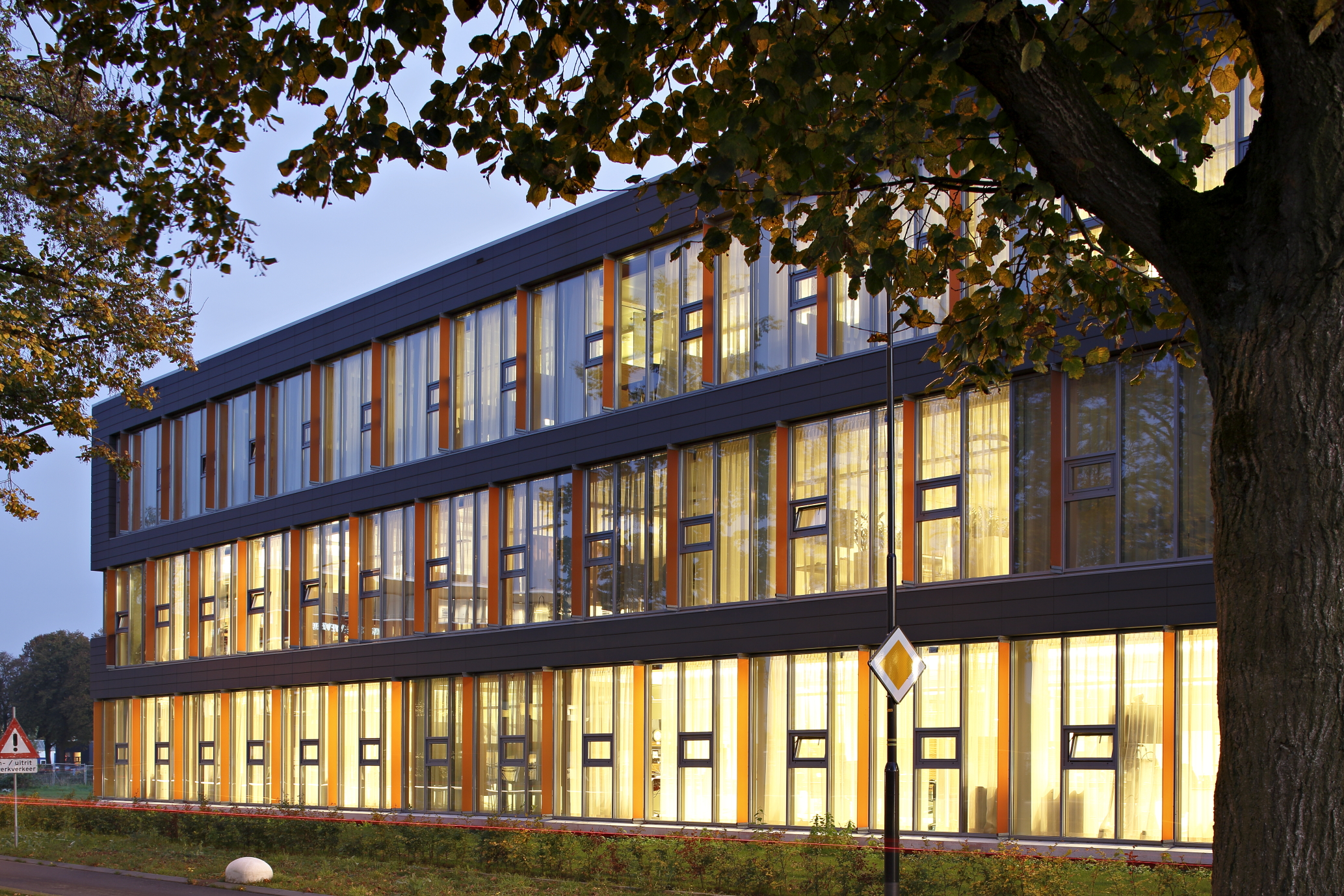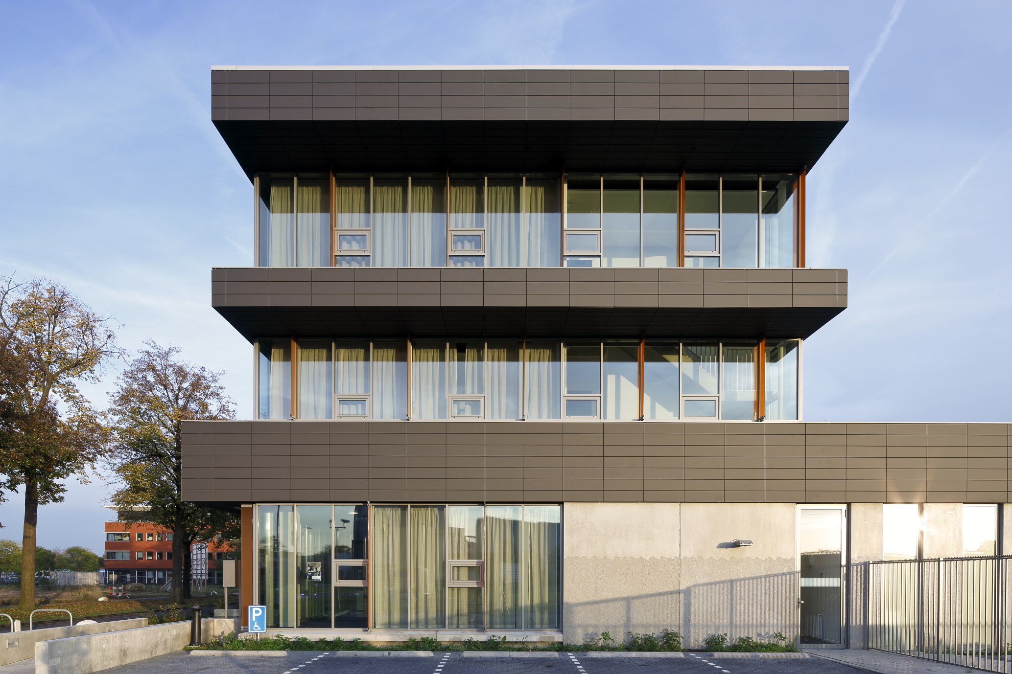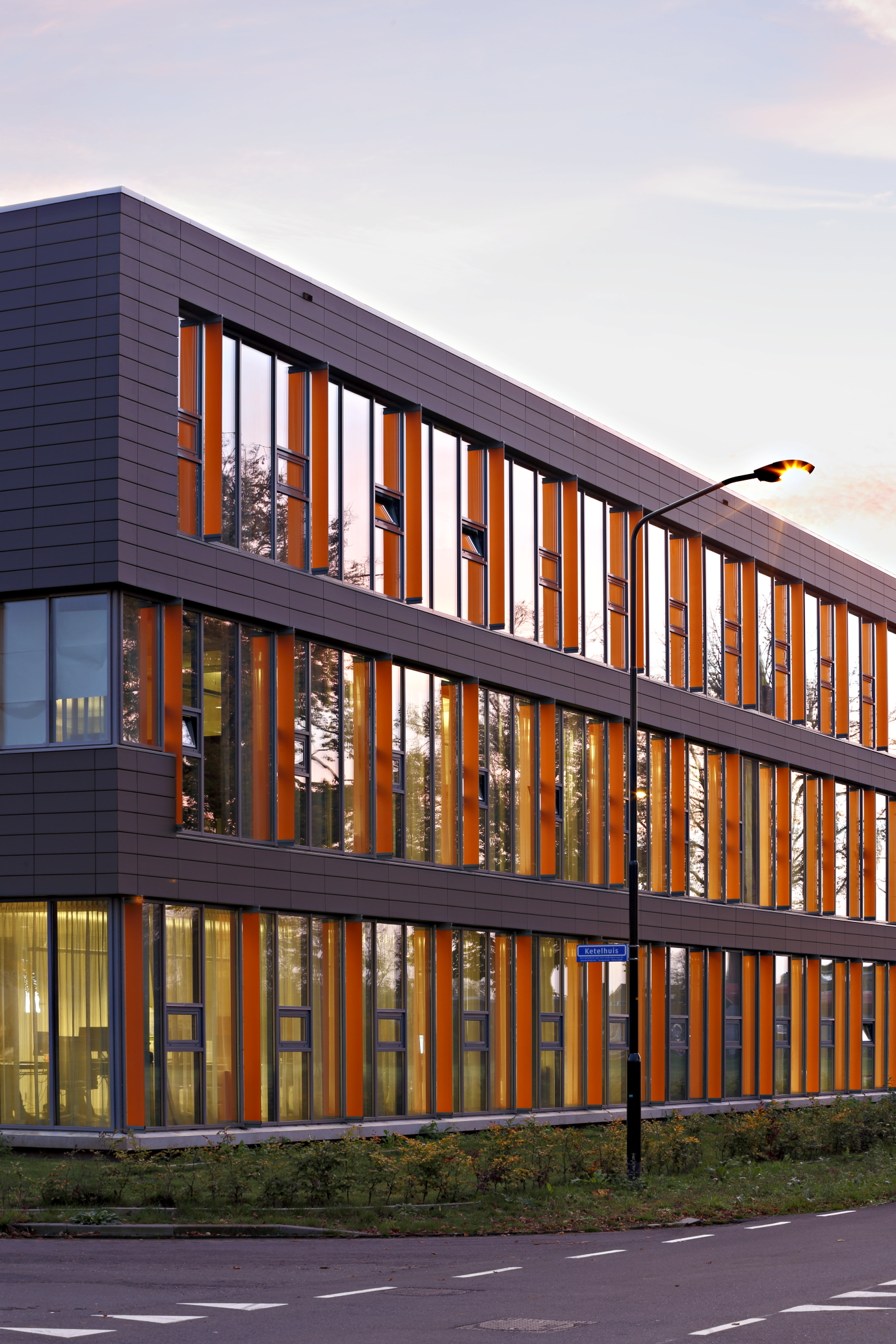 De kunst was om alle functies op effectieve wijze in te passen in het smalle, maar lange gebouw op een manier dat het niet benauwd aan zou voelen. Na uitvoerig overleg met gebruikers over de interne logistiek, heb ik centrale transparante trappenhuizen toegevoegd met vides om het contact tussen alle lagen te bevorderen en het gevoel van eenheid te vergroten. Transparantie naar de buitenwereld is geborgd door een glazen voorgevel. Oranje kleuraccenten omlijsten de ramen en geven warmte en persoonlijkheid aan het gebouw. Het resultaat is een compacte vertaling van de brede doelstelling.