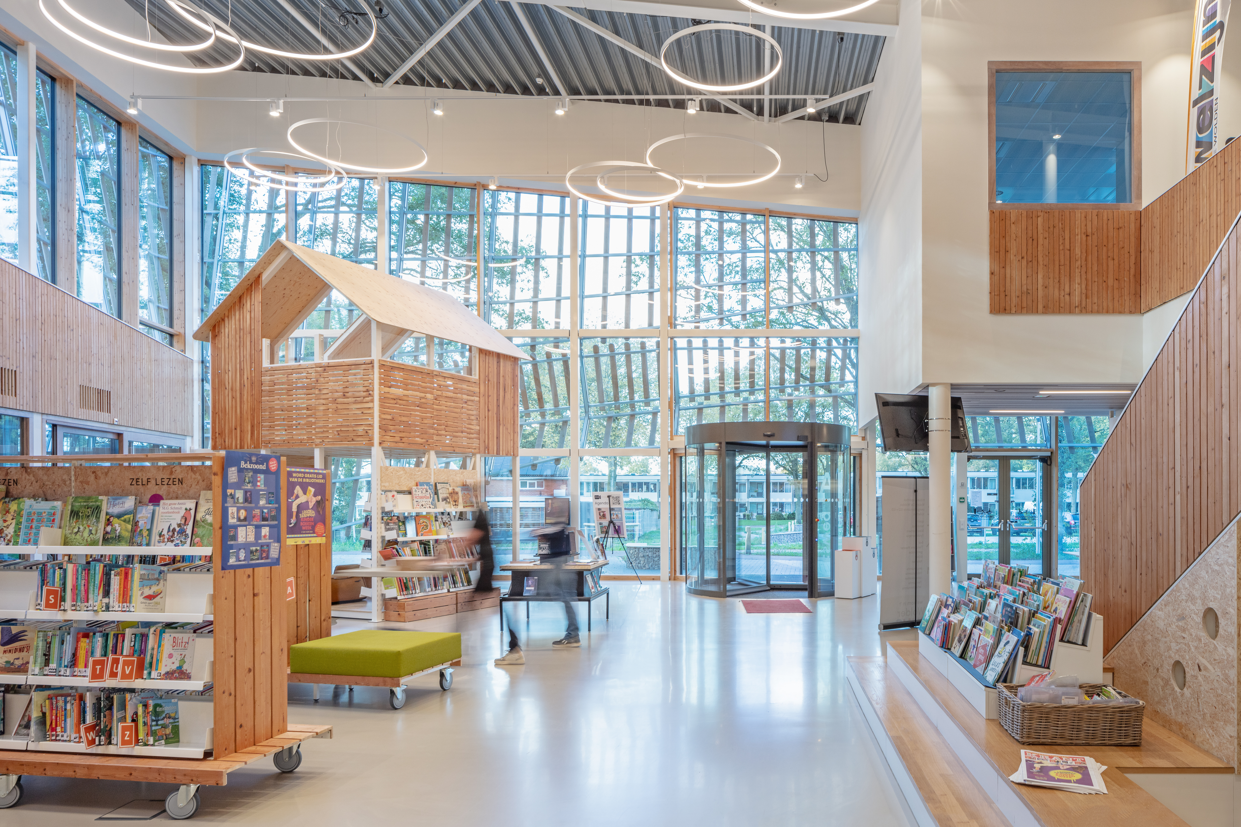In het ontwerp is het grote volume van de bestaande sporthal ingepakt met kleinschalige ruimten voor een prettige uitstraling naar de omgeving. De constructie, de vloer en het dak van de sporthal zijn bewaard gebleven en uitgebreid naar de gewenste grootte voor het totale complex. Het resultaat is een bouwmassa die zich qua maat voegt aan de kleinschalige omliggende woningen. Verbinding staat centraal in het transparante gebouw. Bij binnenkomst kan de bezoeker in één oogopslag alle functies waarnemen. Ook het terrein rondom het gebouw ademt beweging en ontmoeting dankzij meanderende paden die bezoekers door een groen landschap naar de ingang leiden.